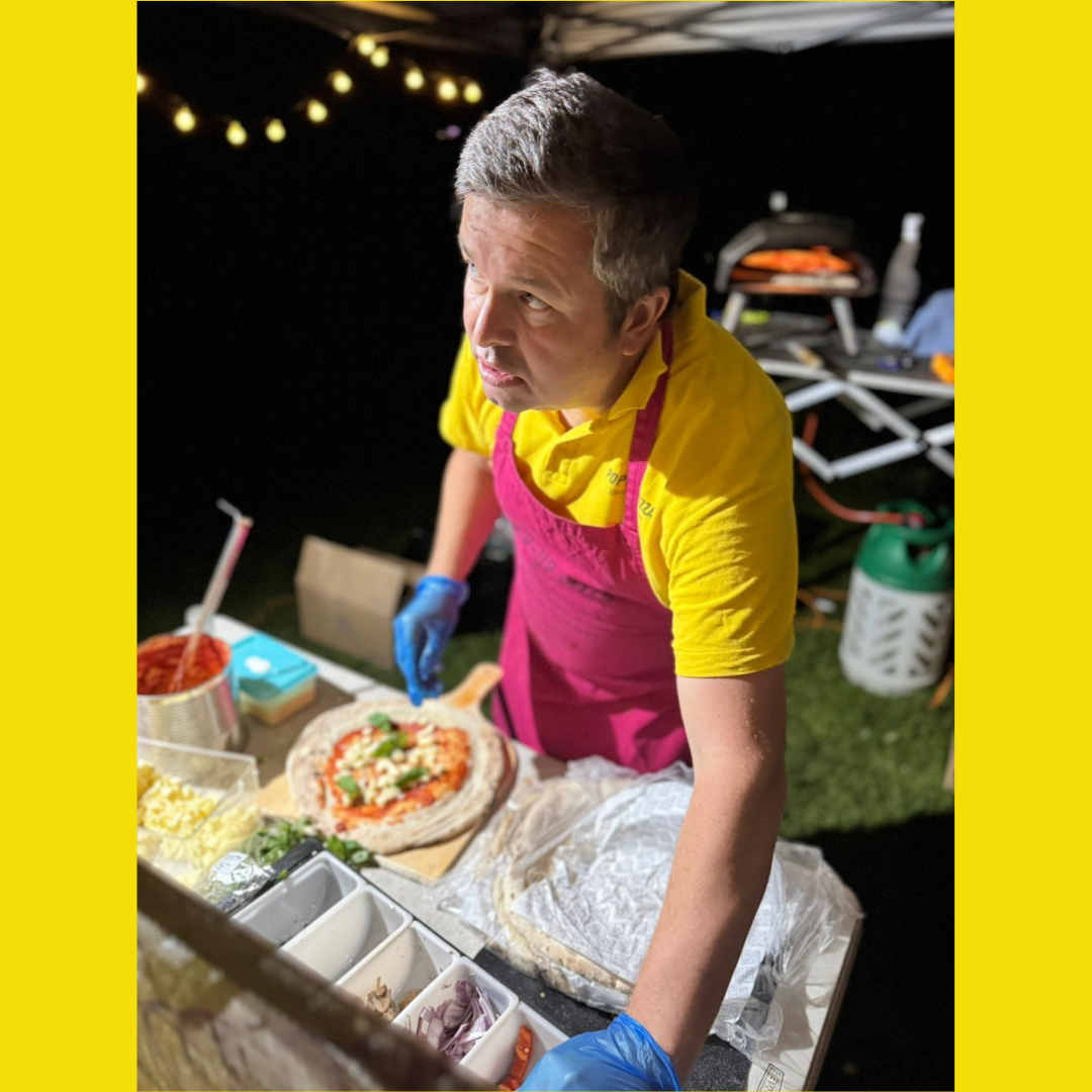 I specialise in helping parties with 40 – 60 guests. I set up my pizza stand in your garden or on your driveway. I prepare and cook to order delicious mobile pizzas in Cheshire with 11″ sourdough pizzas from my menu. Guests comment on how lovely the pizzas are with the light and thin crispy base and the herb-infused homemade tomato sauce.